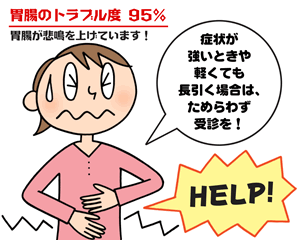 飲み過ぎや食べ過ぎが原因で起こる一時的な胃腸の不調は、しばらく胃腸を休めれば回復するケースがほとんどです。ただし、同じような不摂生を続けていると、症状を繰り返したり、重い病気に進んでしまうことがあるので、早めの対処が大切になります。胃腸の調子が悪いときは、野菜スープやおかゆなどの消化のよいものを少しずつ摂るようにし、アルコールや炭酸飲料、コーヒー、紅茶、香辛料、塩分、糖分、脂肪の多いもの、繊維の多い根菜類、タバコなどは控えてください。また下痢の場合は、水分をしっかり補給することが大切です。市販薬は種類によって作用が異なるので、使用する際は薬剤師に相談し、自分の症状に合ったものを選んでもらいましょう。こうした対処で症状が改善しない場合は、自己判断で薬を使い続けることは避け、なるべく早めに病医院を受診しましょう。