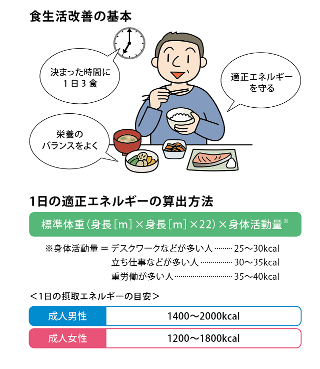 糖尿病は「肥満の人がなる」と思われがちですが、日本人は皮下脂肪よりも内臓脂肪をため込みやすいとされ、BMI(※)22の普通体型でも、体重が1㎏増えるごとに糖尿病のリスクが高まるといわれています。一方で、食生活の改善で落としやすいのも内臓脂肪。「最近ズボンやスカートがきつくなってきたな」と感じたら、食生活と運動習慣を見直して糖尿病を予防しましょう。